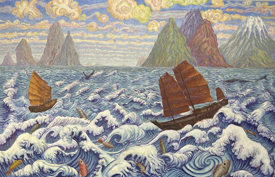 "Junks Fishing" 2023 OIl on Canvas 30" x 46"